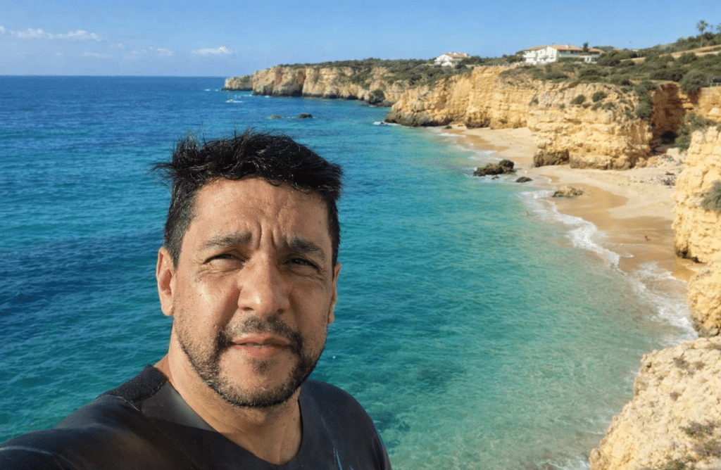 Em 2024, já morando com a minha família em Portugal, surgiu a oportunidade de retomar essa conexão. Uma amiga começou a me convidar para nadar em águas abertas. No início, confesso que resisti. O mar parecia desafiador demais, principalmente por causa da temperatura da água. Mas, depois de muita insistência (e ainda bem que ela insistiu!), aceitei o convite.